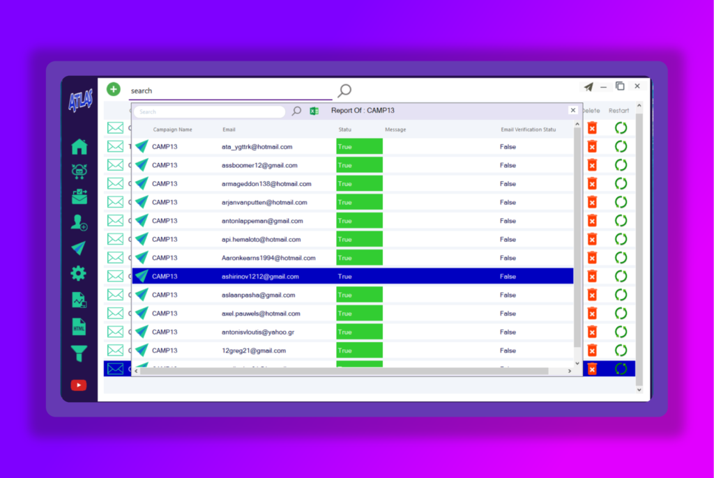 Launch your email campaigns, utilize SMTP rotation, and analyze detailed reports for insights.